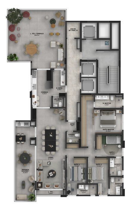 123 m² – 3 suítes | varanda gourmet com churrasqueira a carvão